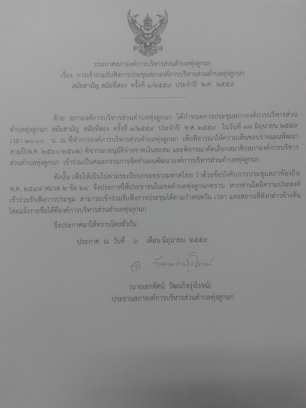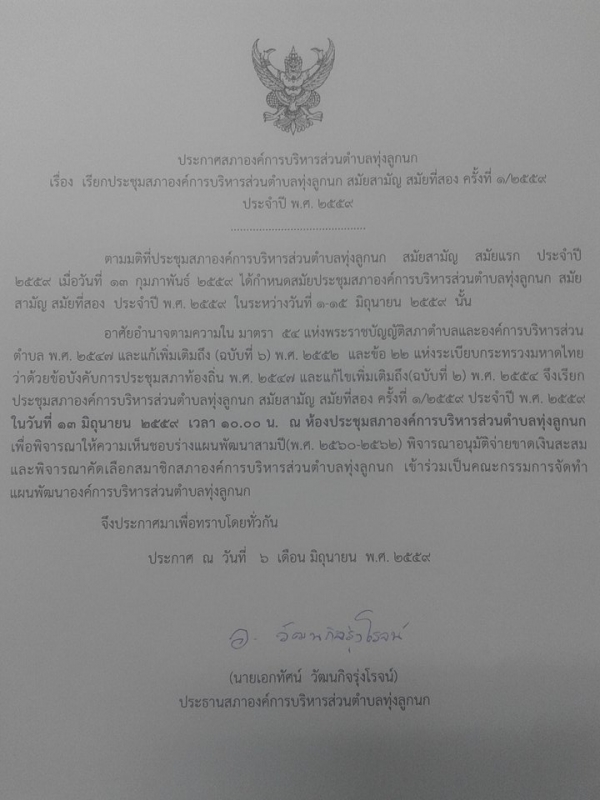 รูปภาพหัวข้อข่าว : เรียกประชุมสภา อบต.ทุ่งลูกนกและเชิญเข้าร่วมรับฟังการประชุมสภา อบต.ทุ่งลูกนก สมัยสามัญ สมัยที่สอง ครั้งที่ 1/2559