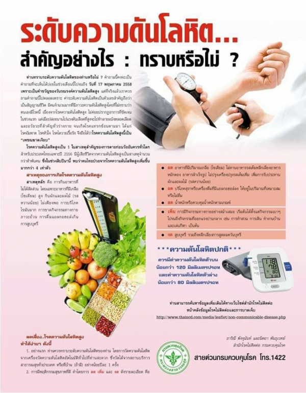 รูปภาพหัวข้อข่าว : สาระน่ารู้ เรื่องโรคความดันโลหิตสูง โรคเบาหวาน
