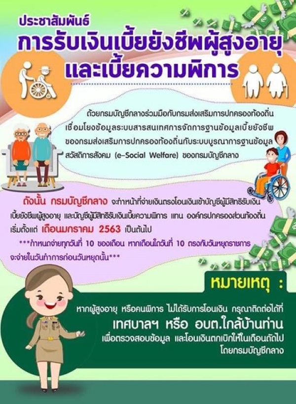 รูปภาพหัวข้อข่าว : การรับเงินเบี้ยยังชีพผู้สูงอายุและเบี้ยความพิการ