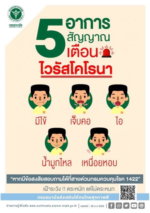 รูปภาพหัวข้อข่าว : 5 อาการ สัญญาณเตือน "ไวรัสโคโรนา"