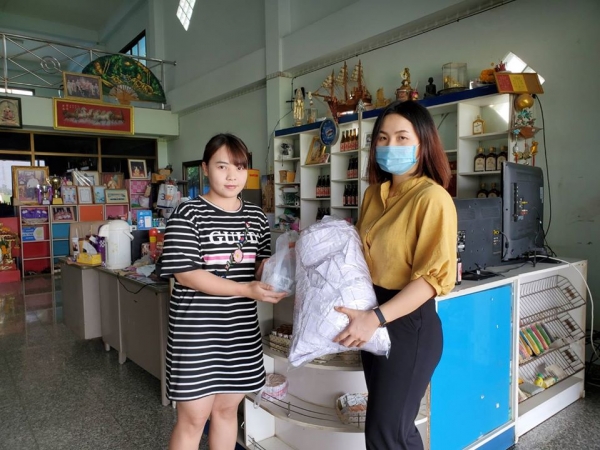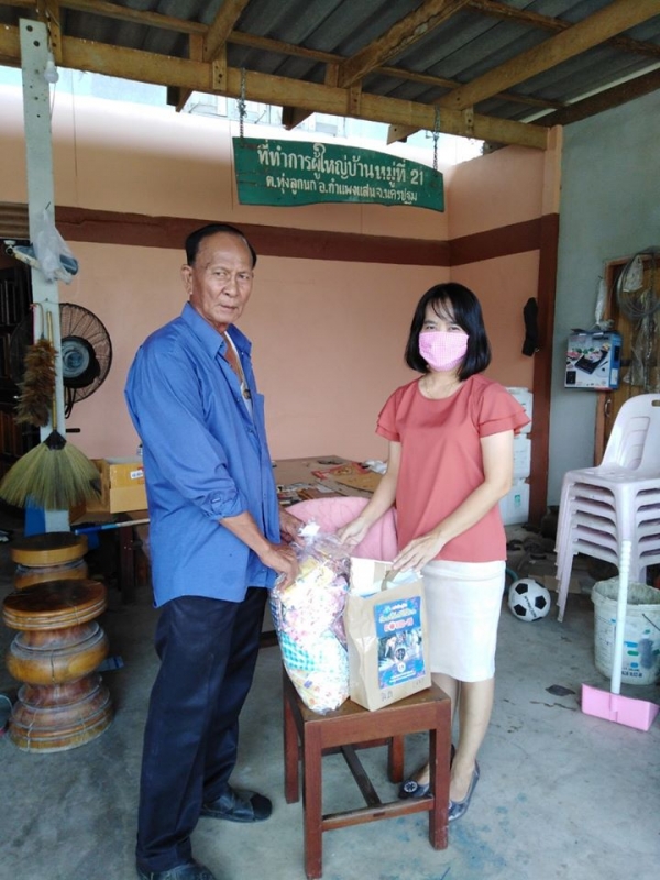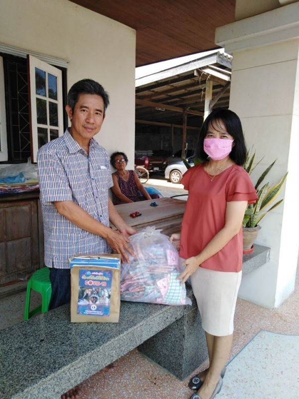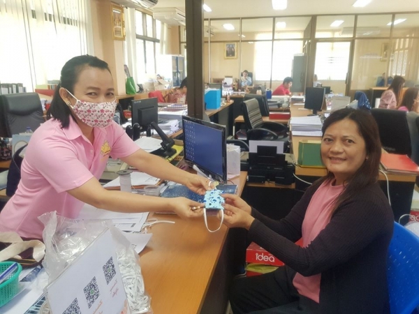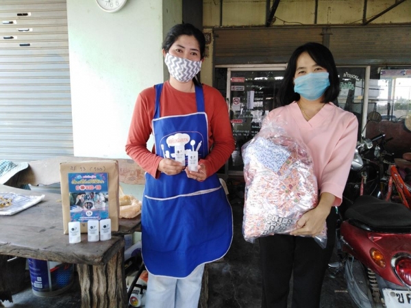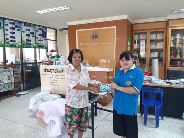 รูปภาพหัวข้อข่าว : มอบหน้ากากผ้าและคู่มือป้องกันโควิด-19