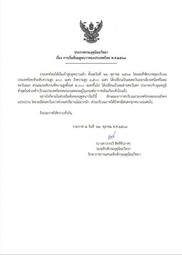รูปภาพหัวข้อข่าว : ประกาศกรมอุตุนิยมวิทยา การเริ่มต้นฤดูหนาว พ.ศ. 2563