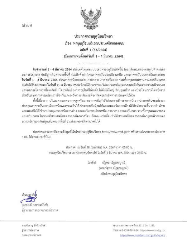 รูปภาพหัวข้อข่าว : ประกาศกรมอุตรุนิยมวิทยา