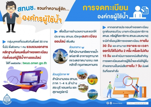 รูปภาพหัวข้อข่าว : ประชาสัมพันธ์ การจดทะเบียนก่อตั้งองค์กรผู้ใช้น้ำ