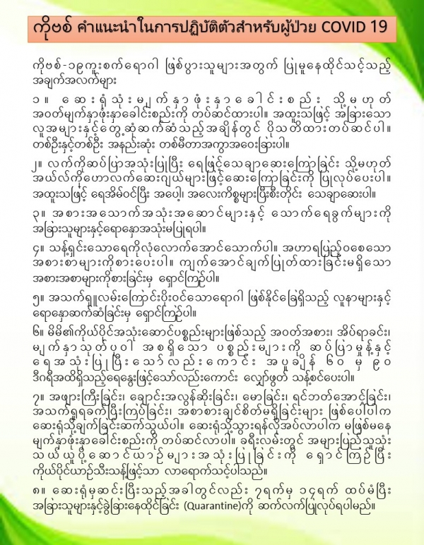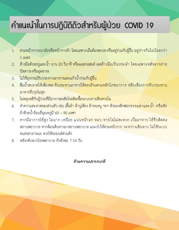 รูปภาพหัวข้อข่าว : การปฏิบัติตัวสำหรับผู้ป่วย COVID – 19