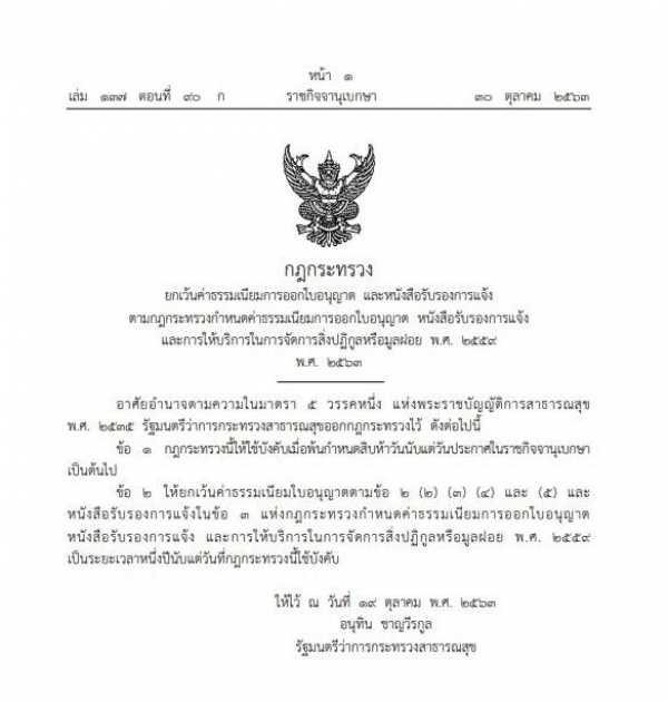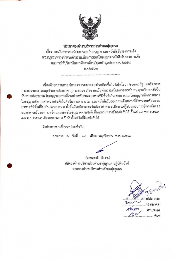 รูปภาพหัวข้อข่าว : ประชาสัมพันธ์ยกเว้นค่าธรรมเนียมการออกใบอนุญาตฯลฯ พ.ศ. 2559 พ.ศ.2563