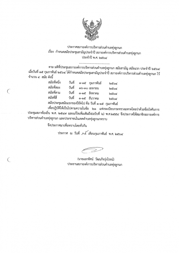 รูปภาพหัวข้อข่าว : กำหนดสมัยประชุมสามัญประจำปี สภาองค์การบริหารส่วนตำบลทุ่งลูกนก ประจำปีงบประมาณ พ.ศ. 2564