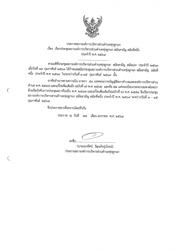 รูปภาพหัวข้อข่าว : เรียกประชุมสภาองค์การบริหารส่วนตำบลทุ่งลูกนก สมัยสามัญ สมัยที่หนึ่ง ประจำปีงบ พ.ศ. 2564