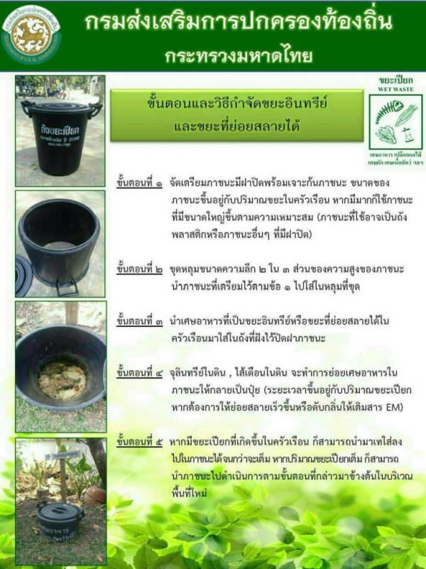 รูปภาพหัวข้อข่าว : ขอเชิญชวนร่วมกันจัดทำถังขยะเปียกลดโลกร้อนอย่างต่อเนื่องให้ครบทุกครัวเรือน