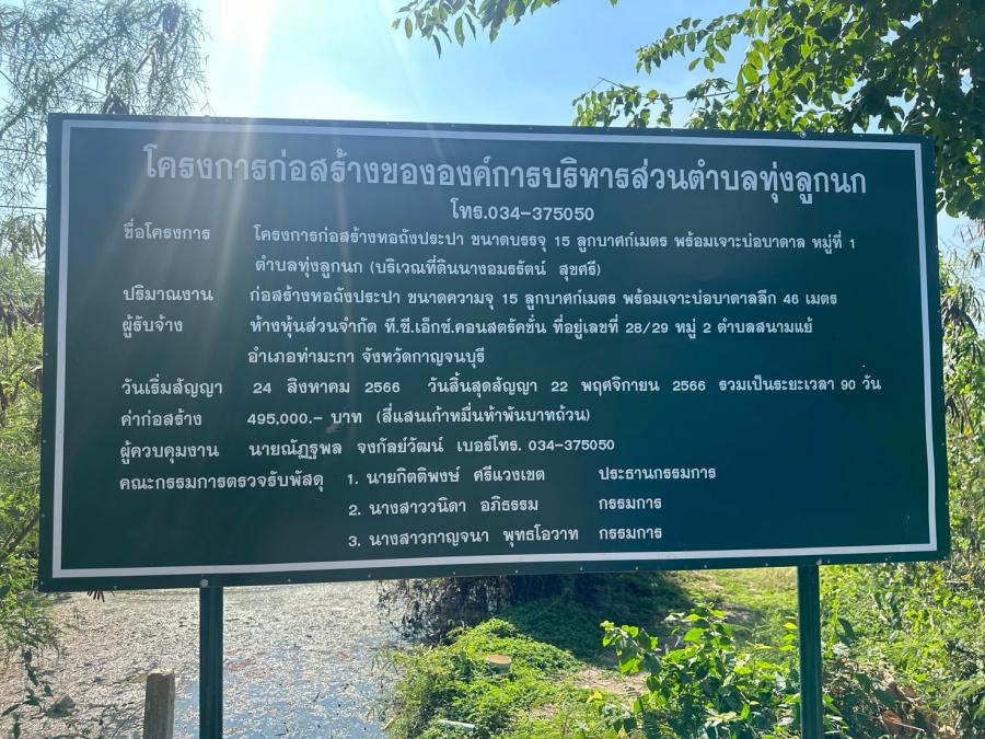 โครงการก่อสร้างหอถังประปา ขนาดบรรจุ 15 ลูกบาศก์เมตร หมู่ 1 และ หมู่ 22