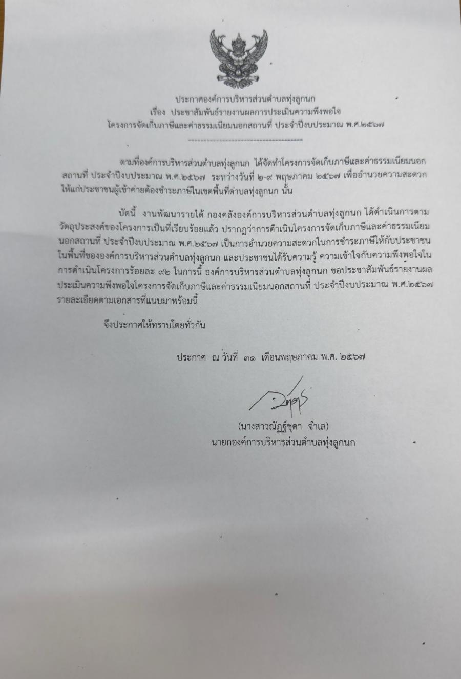 ธนาคารขยะตำบลทุ่งลูกนก ประจำเดือนพฤษภาคม 2567