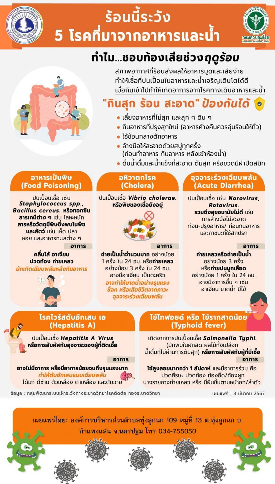 ขอประชาสัมพันธ์ ร้อนนี้ระวัง 5 โรคที่มาจากอาหารและน้ำ
