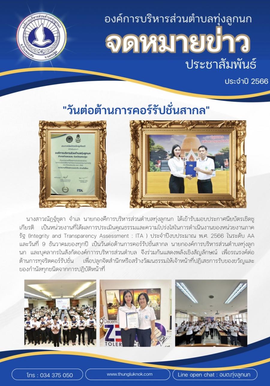 รายงานผลการดำเนินการป้องกันการทุจริตประจำปี