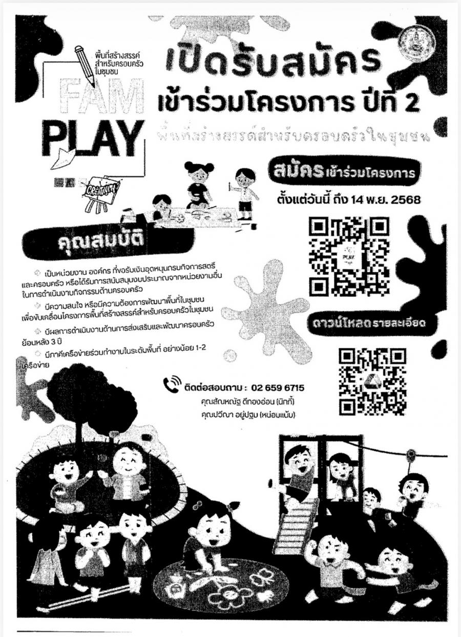 ประชาสัมพันธ์การรับสมัครเข้าร่วมโครงการพื้นที่สร้างสรรค์สำหรับครอบครัวในชุมชน ปีที่ 2